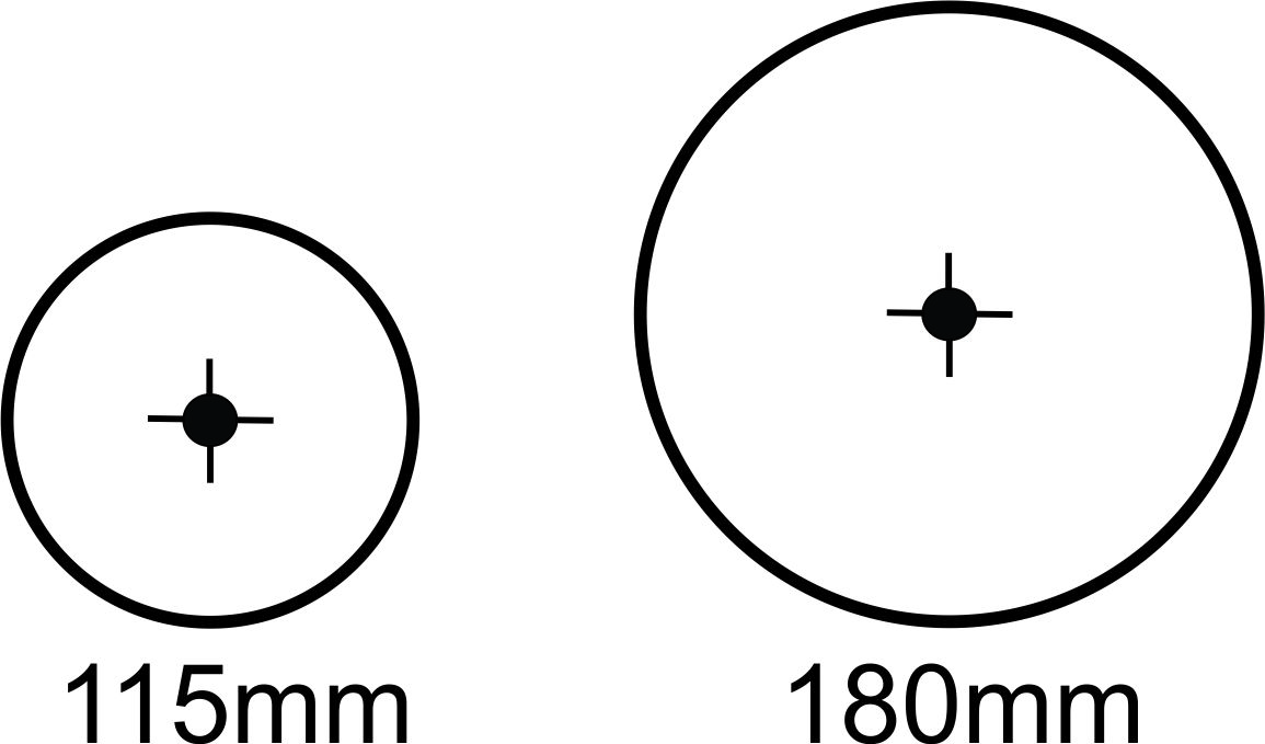 O furo central é de 22 mm (7/8") e diâmteros de 4,5 e 7".