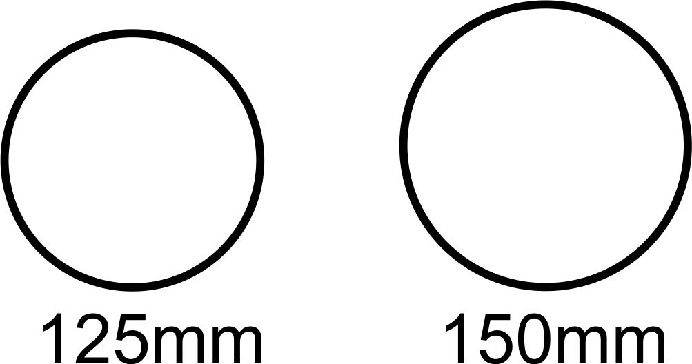 Medidas disponíveis: 5" (125mm), 6" (152mm) e 120 x 100mm