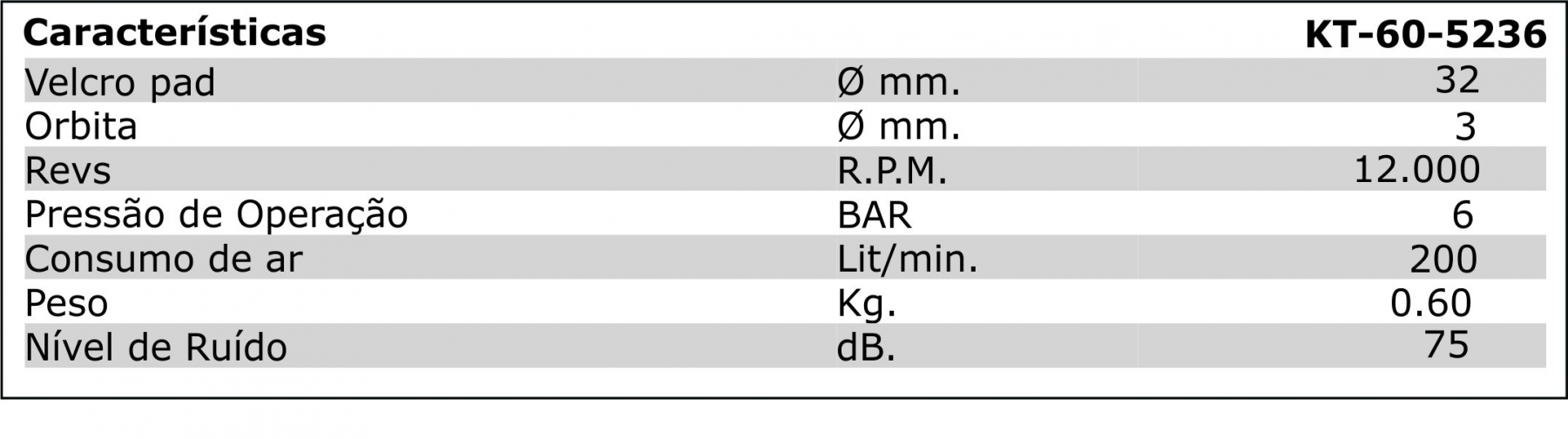 CARACTERÍSTICAS: Lixadeira Angular KT-60-5326