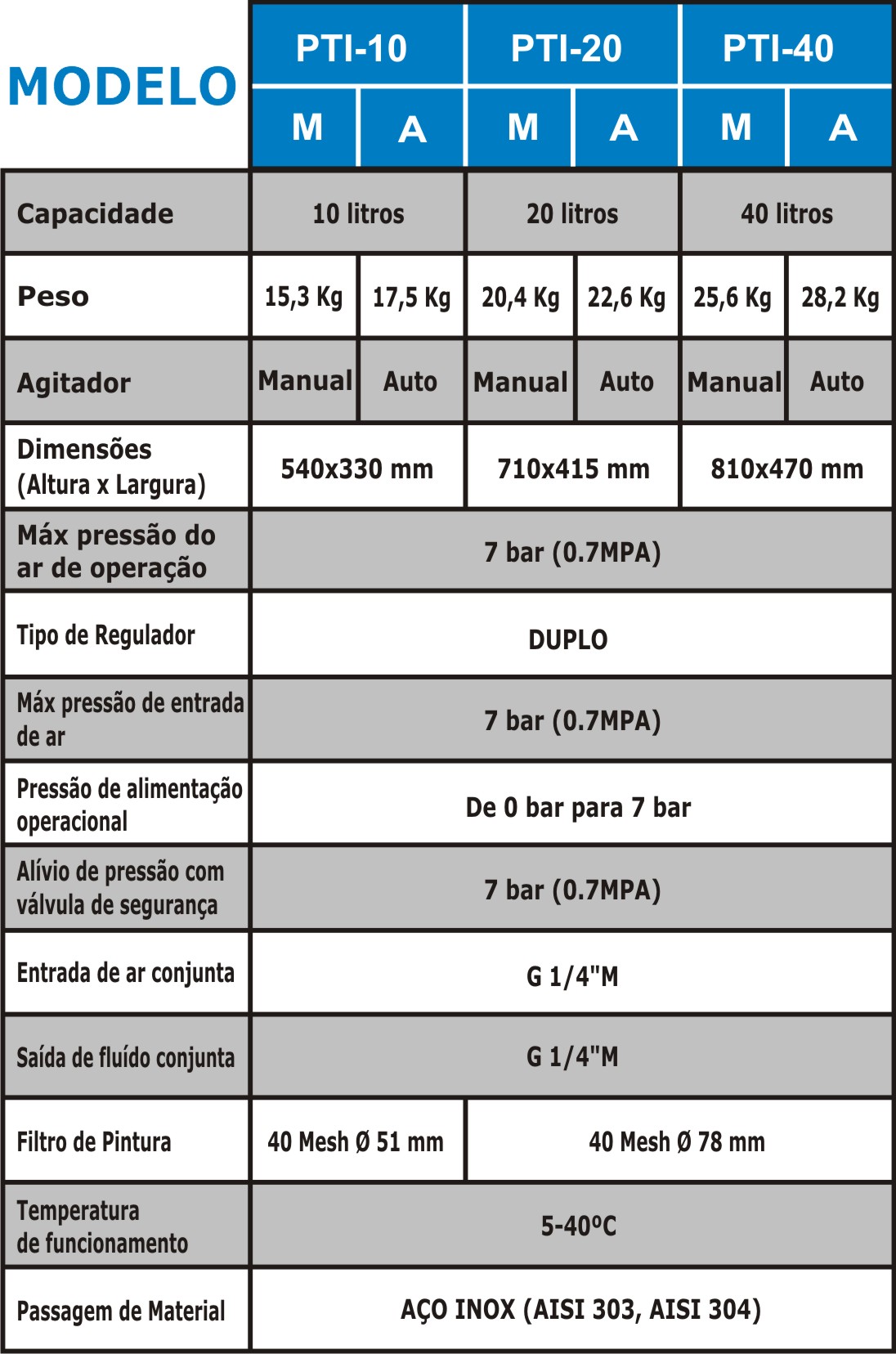 CARACTERÍSTICAS: Tanque de Pressão para Pintura PTI-40A